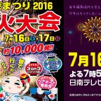 日南テレビ! では、花火大会の模様を7月16日(土)よる7:55頃から生配信でお届けする予定です(荒天時は17日)。