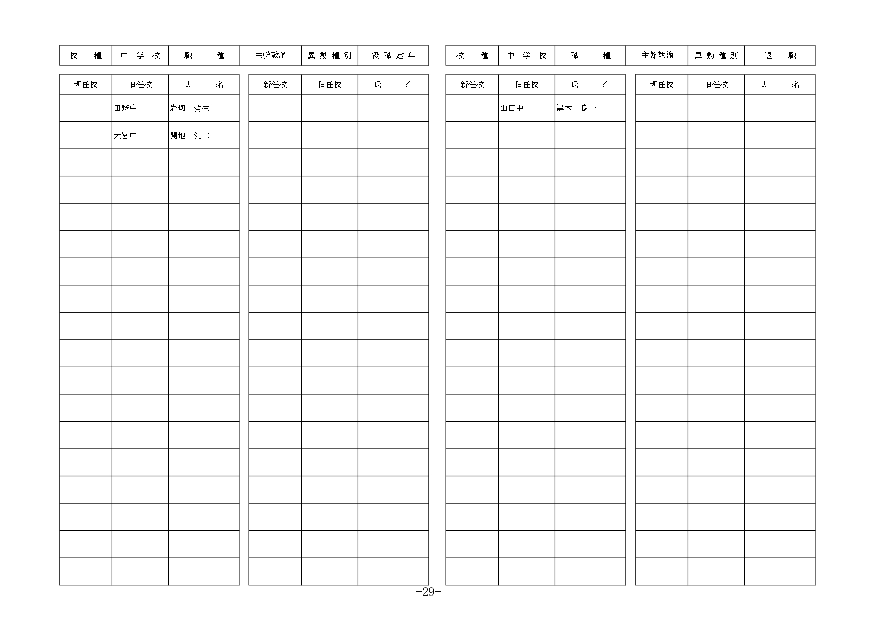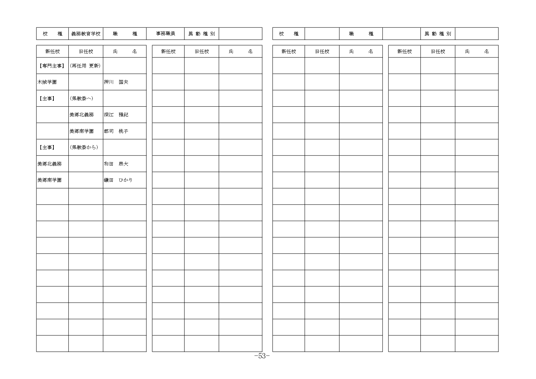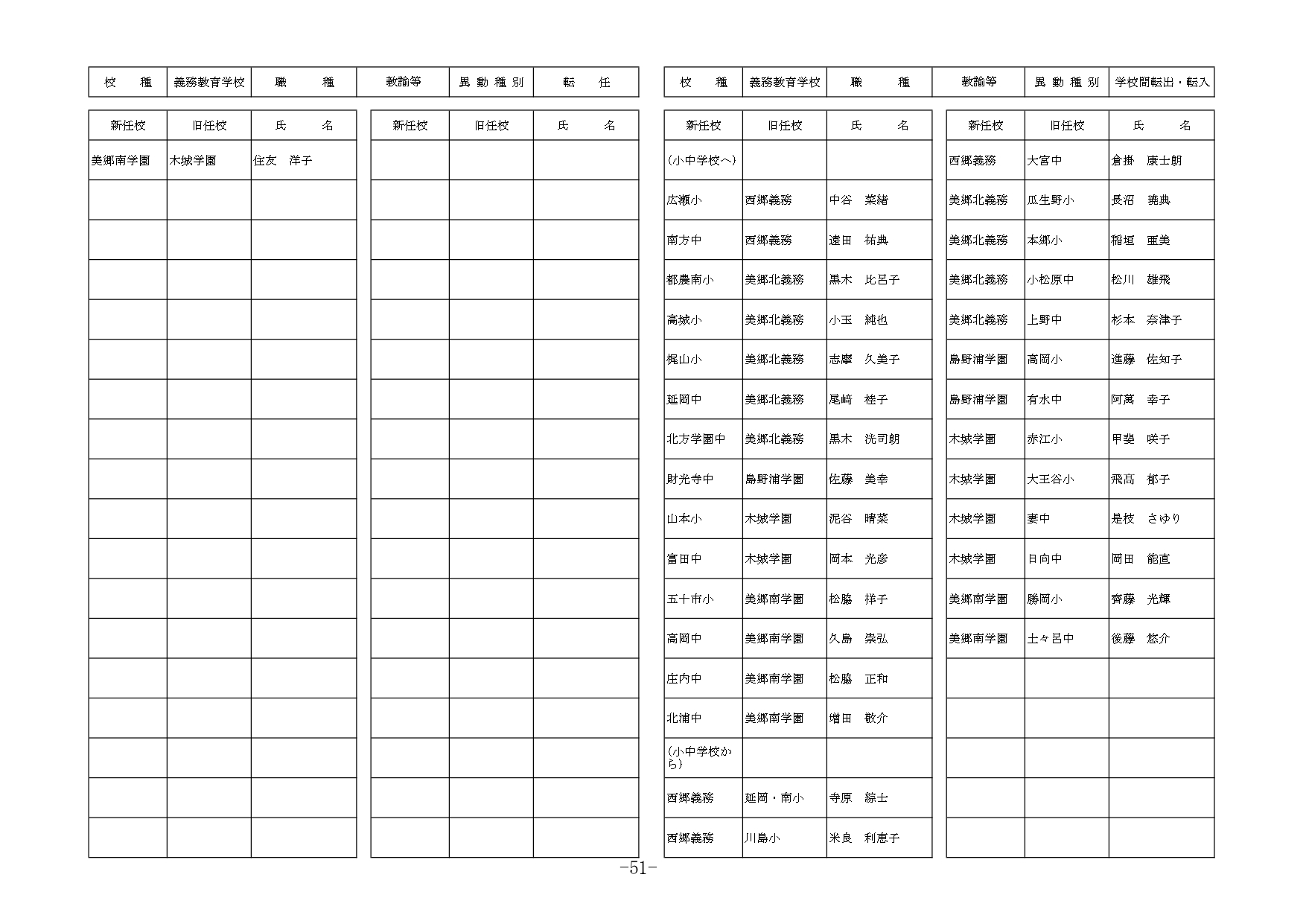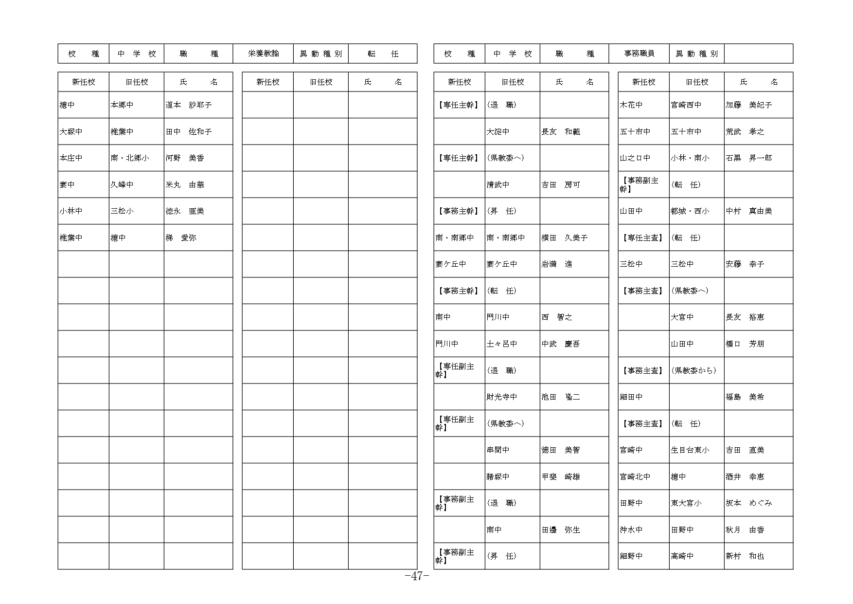 | 教諭等 | 退職 | 南・南郷中 | 宮田 美奈子 | |