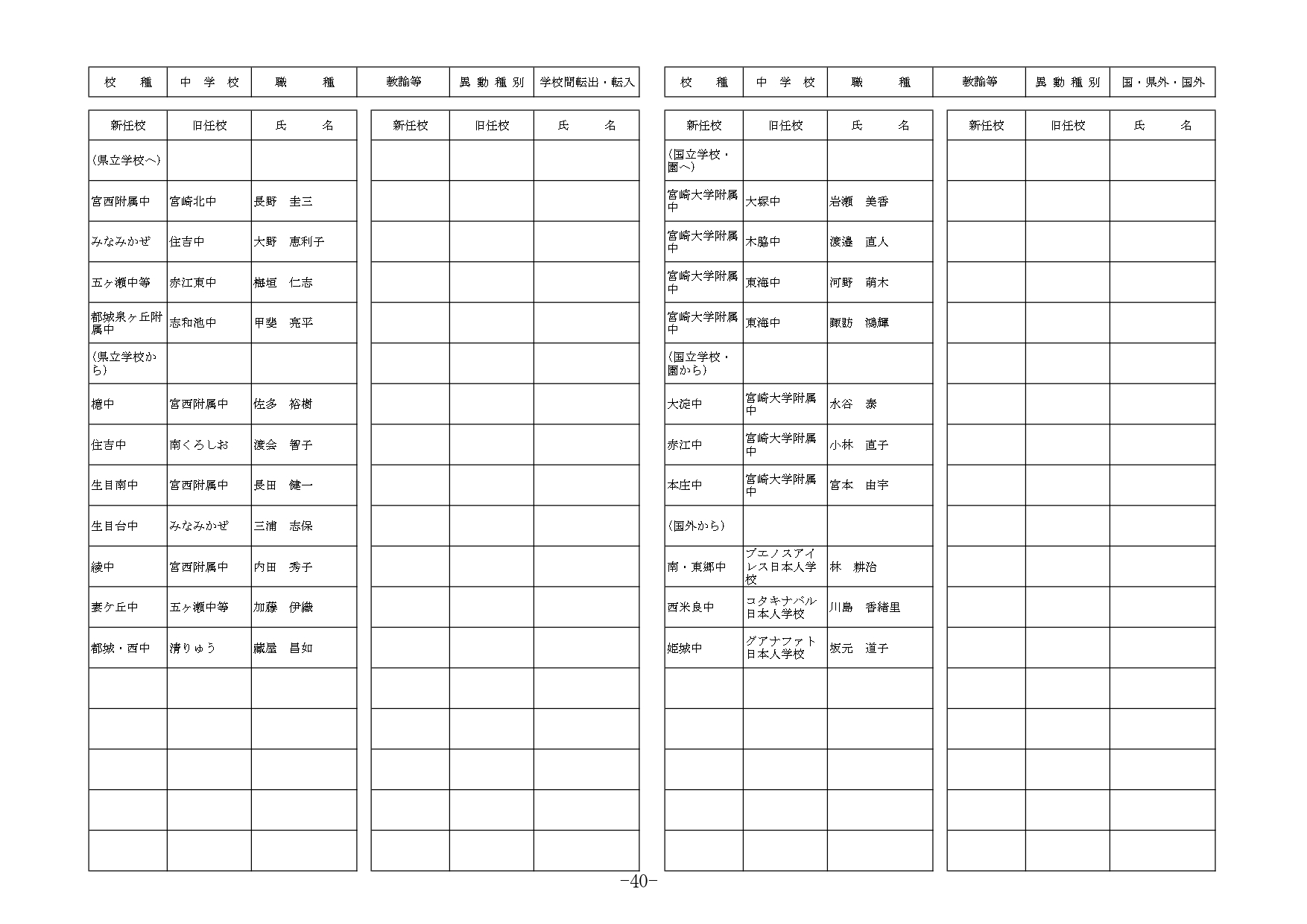 このうち日南・串間市内の中学校の異動を掲載。 県内全体の教員の異動情報は追って画像で掲載(クリック・タップで拡大)。
