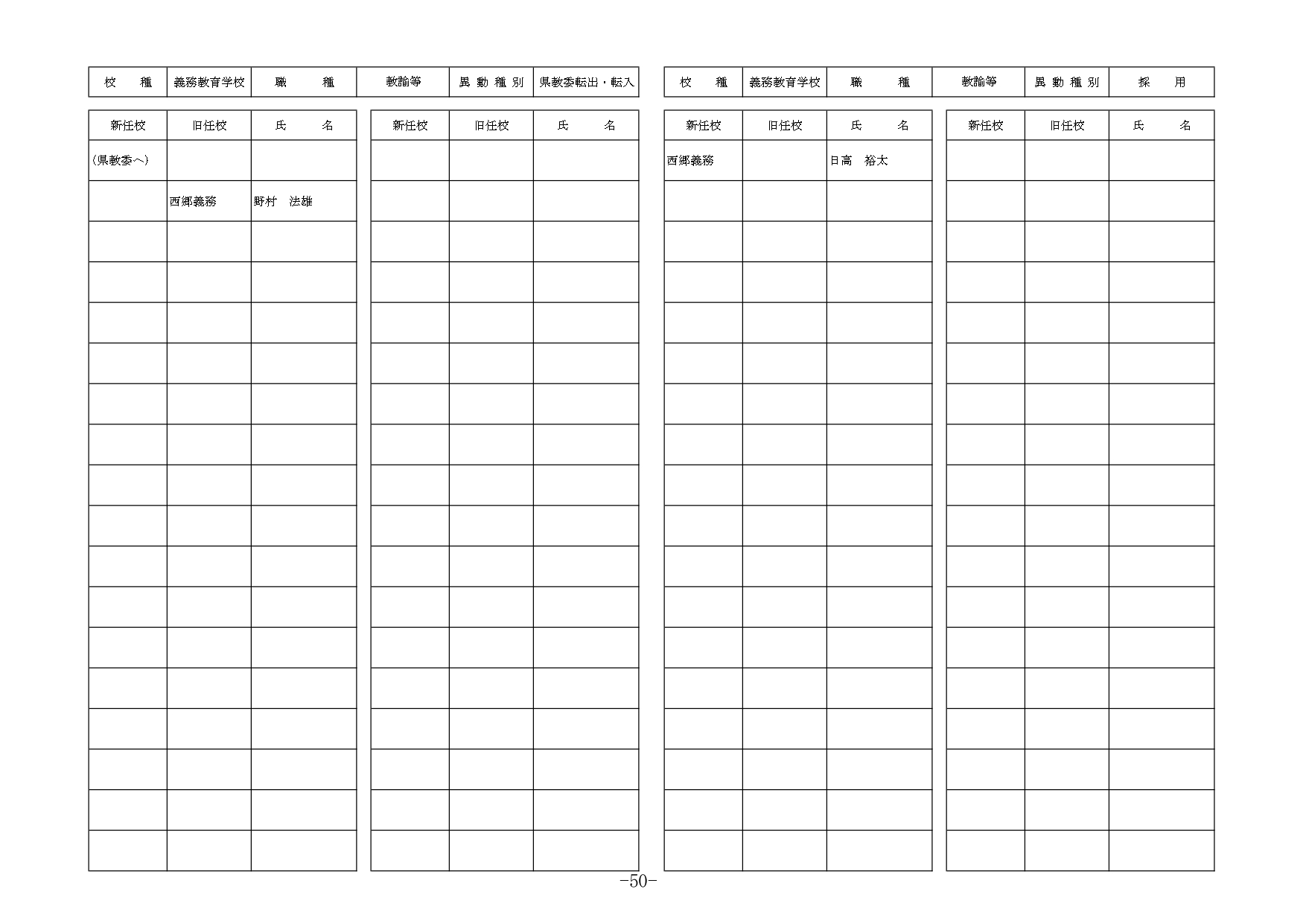 | 教諭等 | 転任 | 油津中 | 銀鏡中 | 竹下 西乃 |