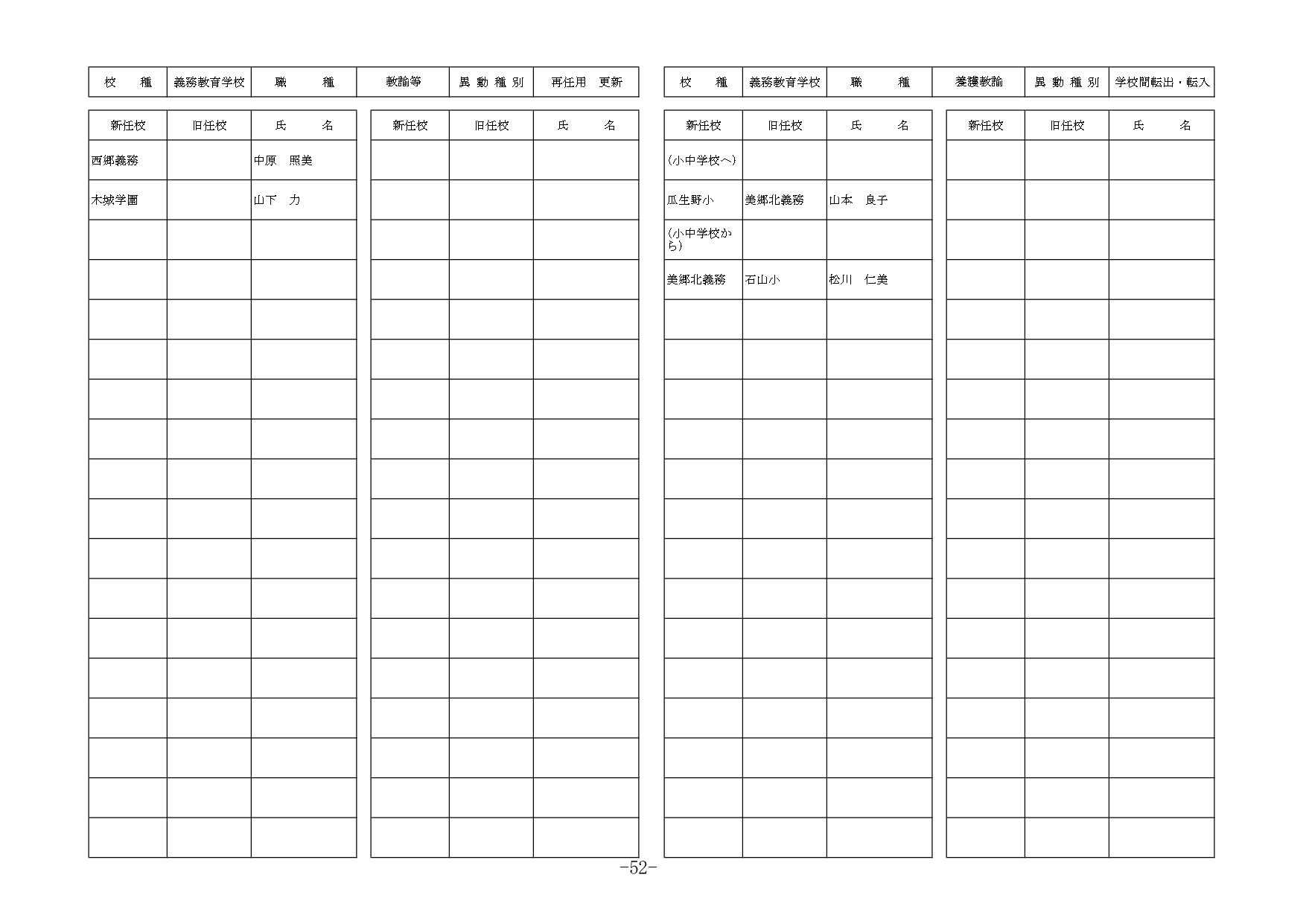 | 事務職員 | 昇任 | 南・南郷中 | 南・南郷中 | 横田 久美子 |