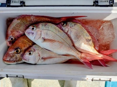 アオリイカ(最大2.2キロ)、アジ、アカハタ、イサキ、イトヒキアジ、オオモンハタ、カサゴ、タイ、チヌ、ハタ